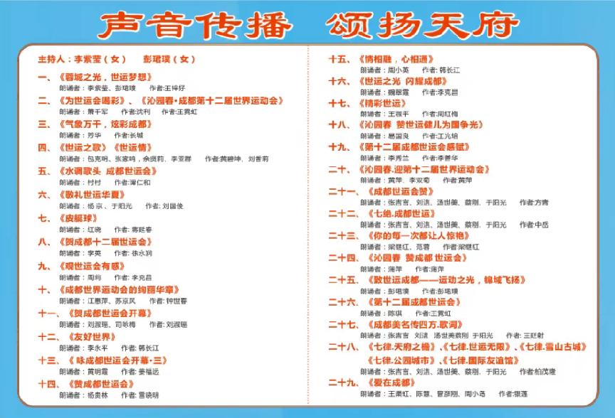 此次分享会是对成都世运会这一城市盛事的诗意回响。据了解,成都毛泽东诗词研究会组织40余位作者创作了64首世运会主题原创诗歌,从运动激情、蓉城之美、文化交融等多维度展现赛事魅力。活动现场,20多位朗诵者声情并茂地演绎了《蓉城之光 世运梦想》《为世运会喝彩》《沁园春·成都第十二届世界运动会》等佳作,赢得满堂喝彩。