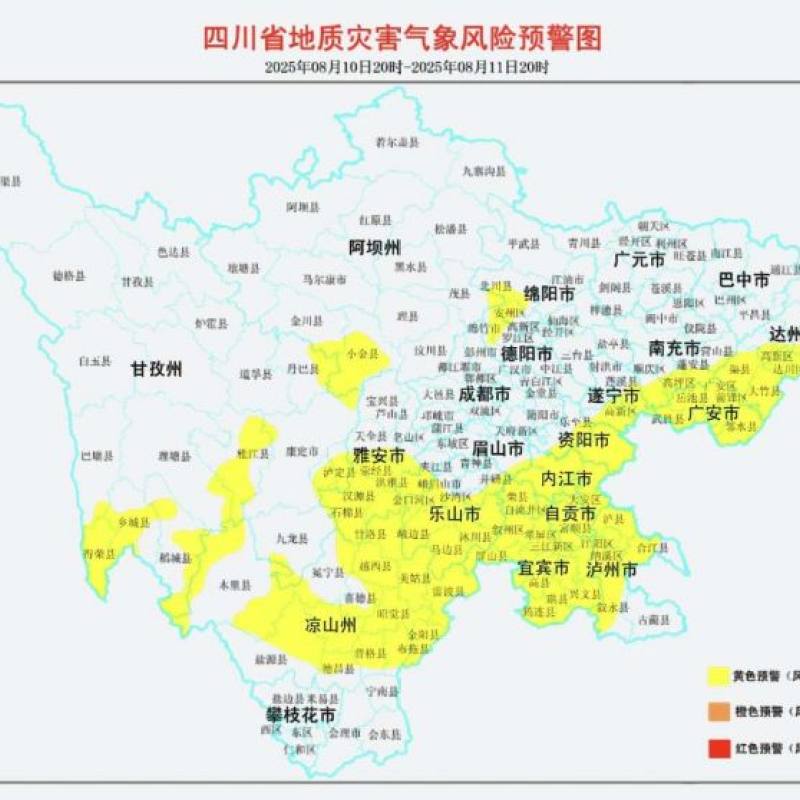 四川经济网讯(记者 胡敏)8月10日,四川省地质灾害防治指挥部办公室发布8月10日20时至8月11日20时全省地质灾害气象风险预警。 预警图 黄色预警区域 自贡市:自流井区、贡井区、大安区、沿滩区、荣县、富顺县; 泸州市 …… 阅读全部 »