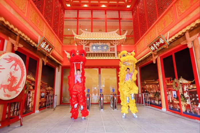 项目团队深度挖掘苏东坡人生轨迹,研究其不同时期的旅居场景,并将宋式美学贯穿空间设计:原木陈设与雅致纸灯相映成趣,光影交织间尽显“无画处皆成妙境”的宋代审美意趣;为给沉浸式体验留足空间,团队更主动缩减近半数商户摊位,特意扩宽公共空间,增设非遗研学区等功能分区,形成多元打卡体验场景。