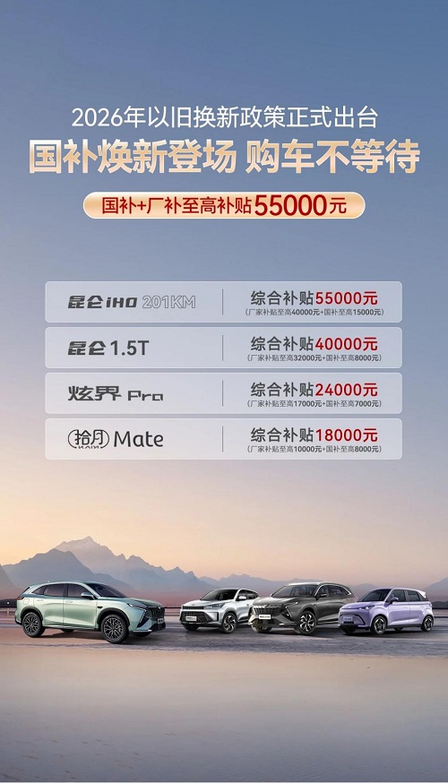 年味渐浓,凯翼汽车推出2026以旧换新专项政策,国家补贴与厂家补贴叠加,至高可享55000元综合优惠,让换车成本直降到底,助用户轻松开启新年驾乘品质升级之旅。