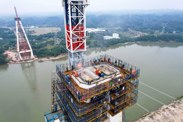 10月6日,天府新区经眉山至乐山高速公路(以下简称“天眉乐高速”)控制性工程——虎渡溪岷江特大桥主塔顺利封顶,即将进入梁板安装工作阶段。虎渡溪岷江特大桥是四川省首座采用钢壳—混凝土组合索塔结构的大跨斜拉桥,此次主塔封顶标志着项目建设取得阶段性重大进展,为我国山区高速桥梁向工业化智能建造技术转型升级作出有力探索。