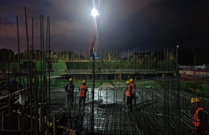 项目自开工以来,便面临多重挑战。场内有1500余棵树木需要迁移,还需要清理老旧综合管沟;场外因毗邻大学正门,受交通与商贩限制,每日仅夜间可通行施工车辆。项目部为此建立了早晚班制度,高效协调人力与物资,最终提前18天完成冲出“正负零”节点。