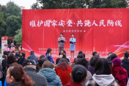 为深入贯彻总体国家安全观,积极响应《中华人民共和国国家安全法》的宣传号召,有效打破群众对国家安全的认知盲区,激发辖区居民主动投身国家安全防线建设的热情,2025年11月21日上午10时,一场别开生面的“维护国家安全・共筑人民防线”主题宣传活动,在横桥社区青年广场激情上演。本次活动由中共成华区委政法委精心指导,中共成华区双水碾街道工作委员会、成华区双水碾街道办事处主办,共青团四川音乐学院委员会协办,成华区委政法委、双水碾街道及双水碾派出所相关领导莅临现场,与辖区居民共襄盛举。