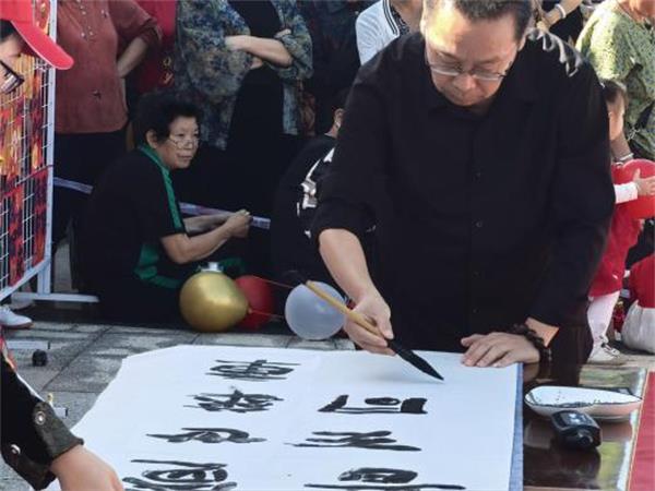 本地书法爱好者现场挥毫泼墨,不仅展现了中华优秀传统文化的魅力,传递文化自信,更将社区治理的理念融入笔墨之间,后续部分作品将用于社区公益义卖,实现文化价值向民生服务的转化。