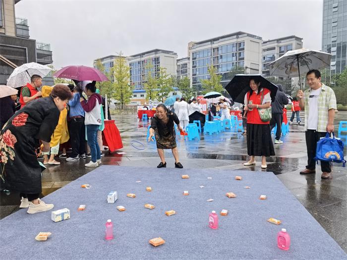 活动现场还设有便民服务区与文化体验区。义诊、反诈宣传等志愿服务贴近居民需求,灯笼制作、猜灯谜、投壶等传统游园项目则吸引众多家庭参与。大家互相协作、笑语不断,在雨中共同感受中秋文化魅力,增进邻里情感。