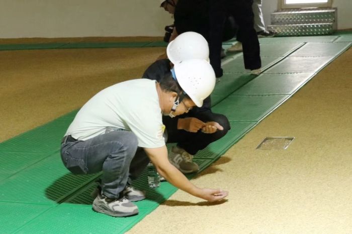 在储备库近30米高的浅圆粮仓顶上从上往下看,大家可以看到一片金黄色的“地面”,而那“地面”实际是堆积了27米高的稻谷,这些稻谷在低温、低氧、富氮的粮仓内“休眠”。 在此期间,一旦接到指令,它们就将奔赴加工厂,蜕去谷壳,变成大米走进市民家中。当然,绝大多数时候,它们都将在粮仓内平静地度过规定的“休眠”期,然后将守护粮食安全的使命,交给新收割的稻谷……