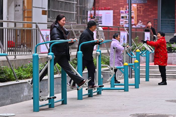 12月23日清晨,在仁寿县文林街道陵州社区的纺兴苑小区内,居民叶子清正在锻炼,她所使用的正是新投用的健身器材。“以前这里设施老旧,现在改造后像换了新家。”她笑着说。